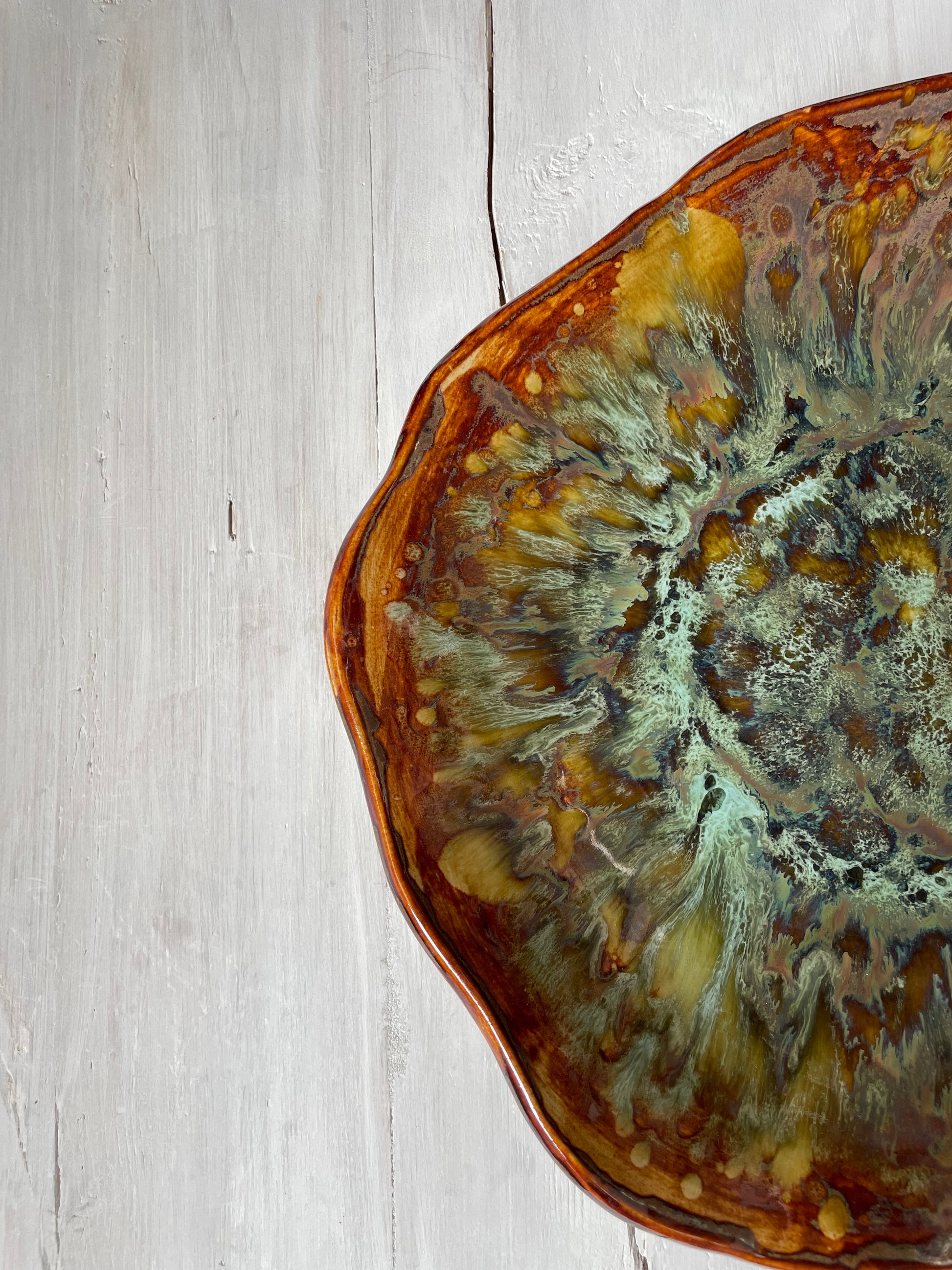 Crafted with the intention to inspire connection, this serving bowl is designed to bring people together over meals made with love. Each piece is handmade with care, featuring deep, complex glazes that add warmth and character to any space. Its versatility shines, whether used for shared dishes, salads, or as a centrepiece fruit bowl - inviting connection in meaningful ways, however you use it.