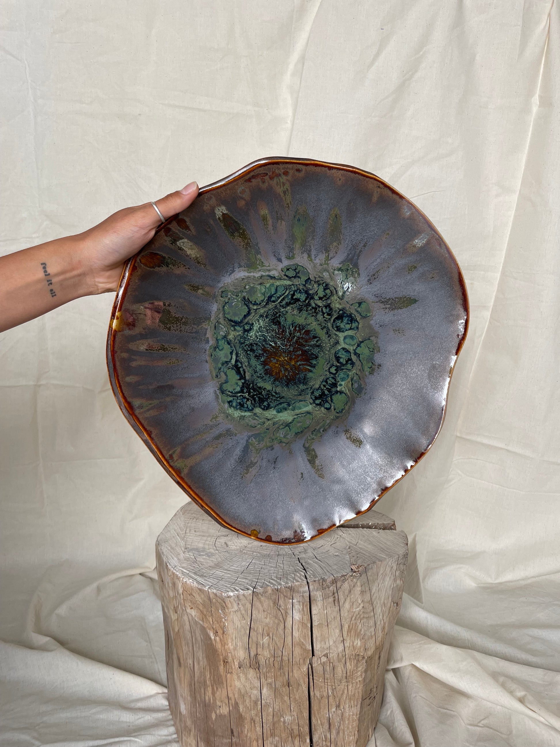 Crafted with the intention to inspire connection, this serving bowl is designed to bring people together over meals made with love. Each piece is handmade with care, featuring deep, complex glazes that add warmth and character to any space. Its versatility shines, whether used for shared dishes, salads, or as a centrepiece fruit bowl - inviting connection in meaningful ways, however you use it.