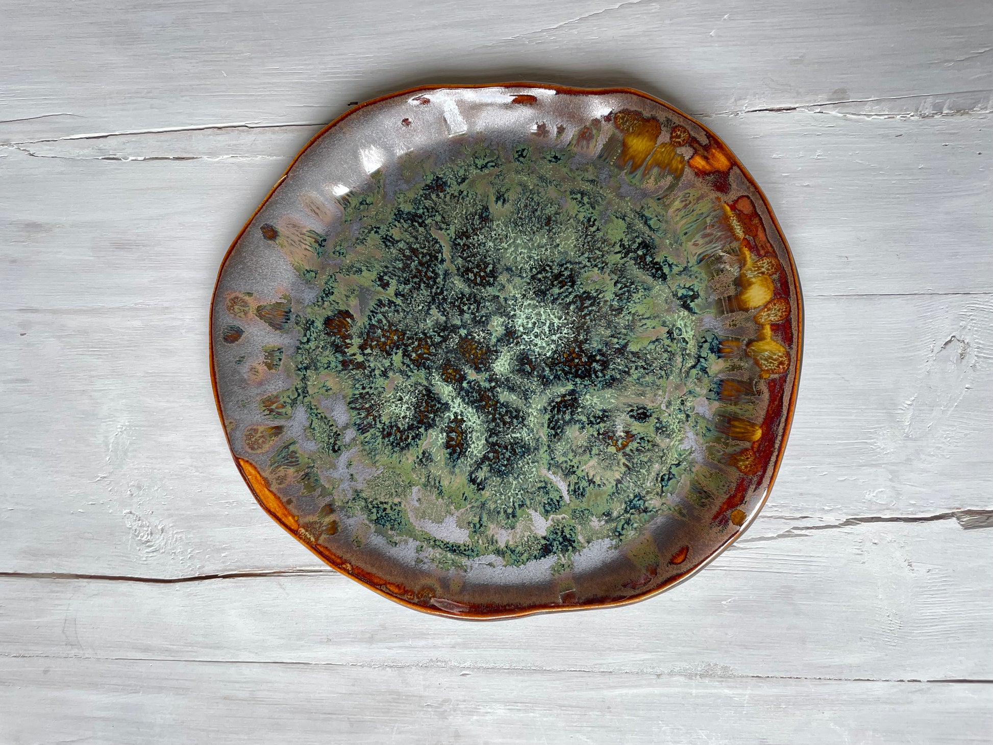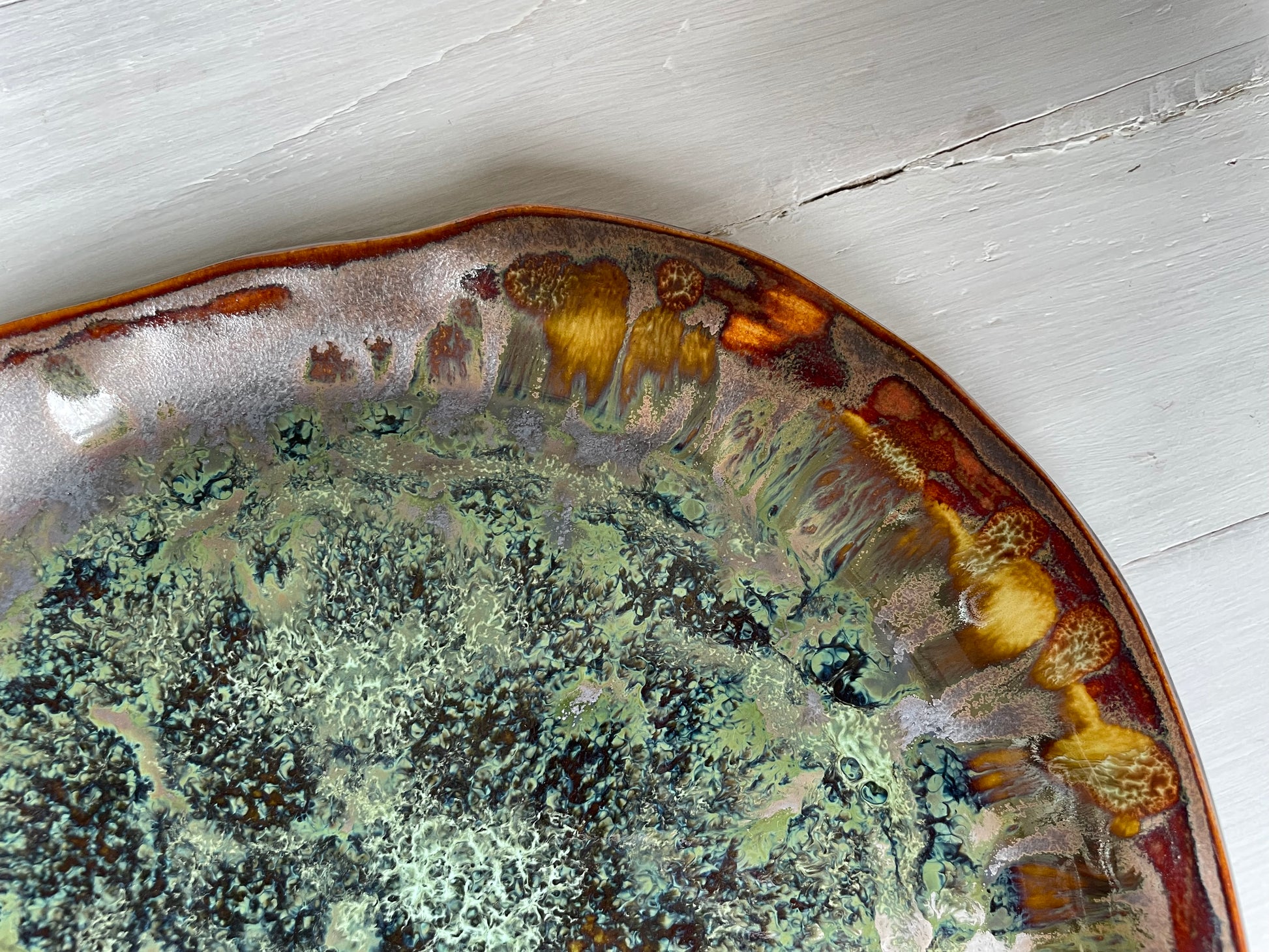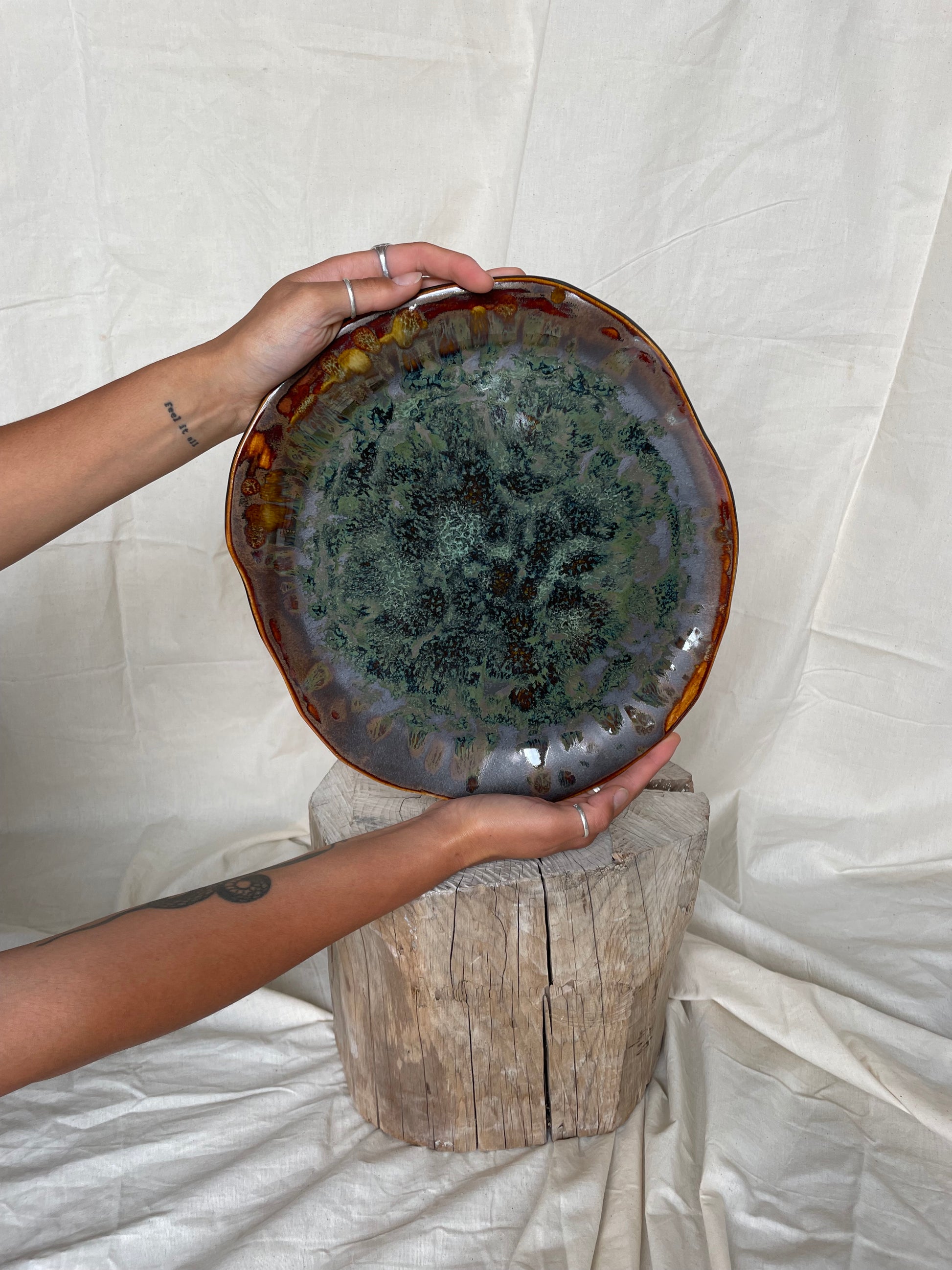 Handmade with care, each piece is unique, featuring deep, rich glazes that add warmth and character to any setting. The high-quality craftsmanship ensures a durable piece that can be cherished for years, enhancing every shared meal with beauty and intention. Let this platter be a centrepiece for gatherings, a blend of art and functionality that enriches every table and moment shared.