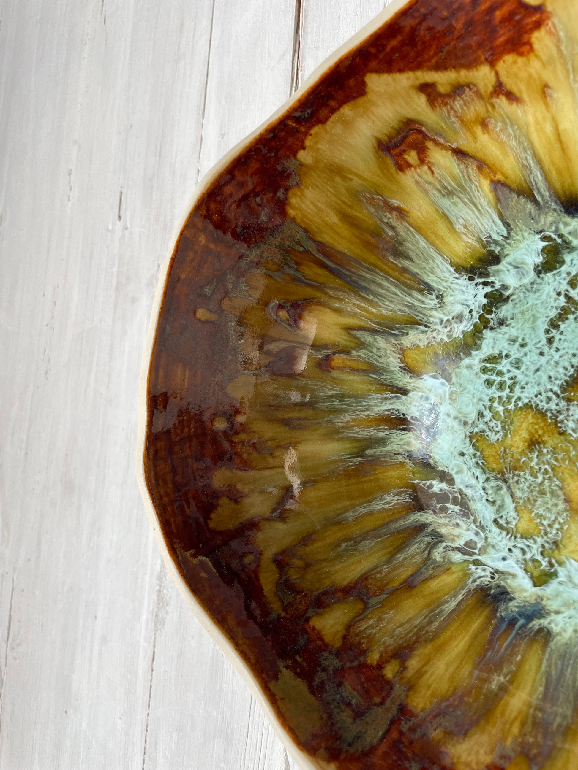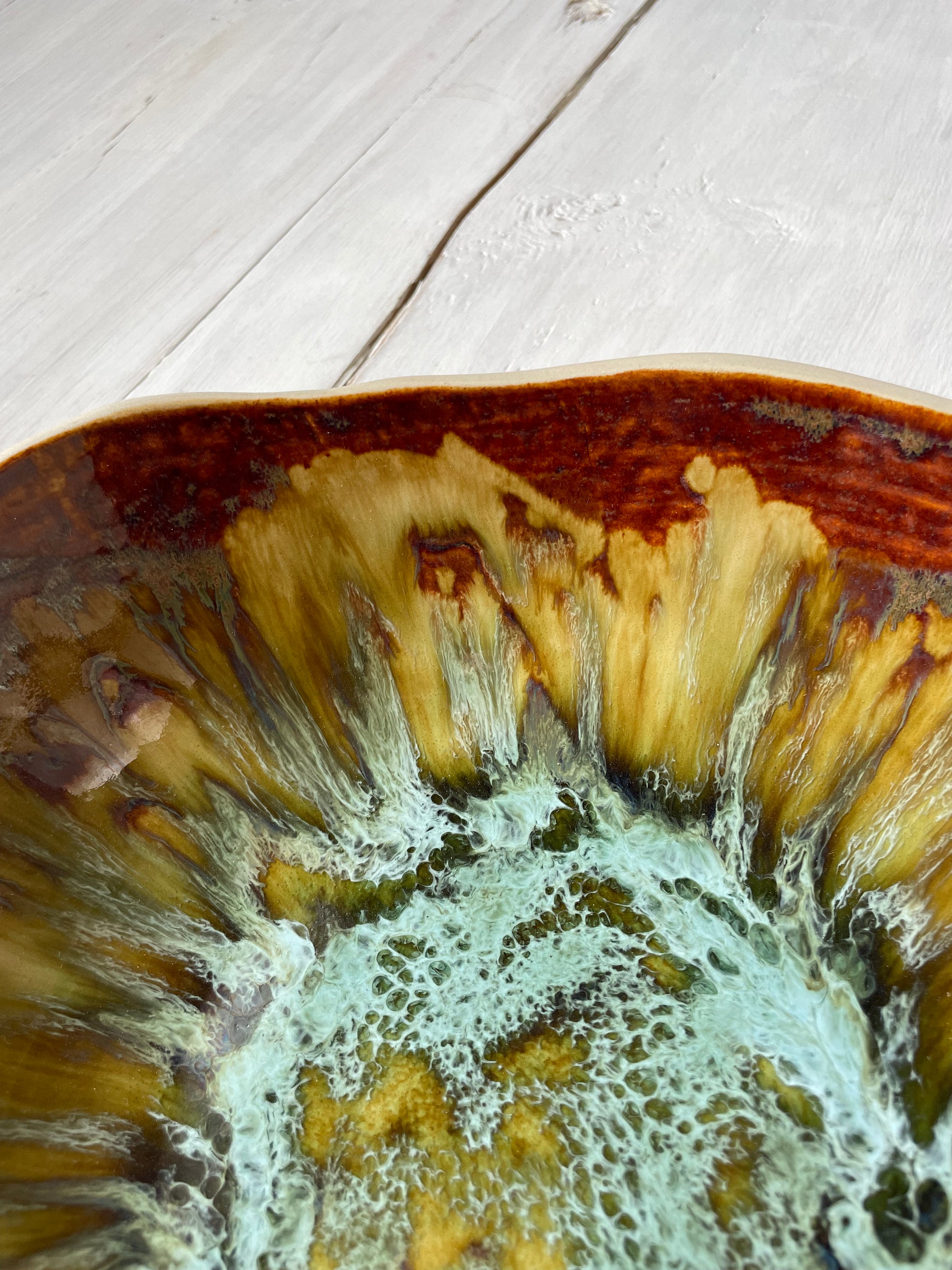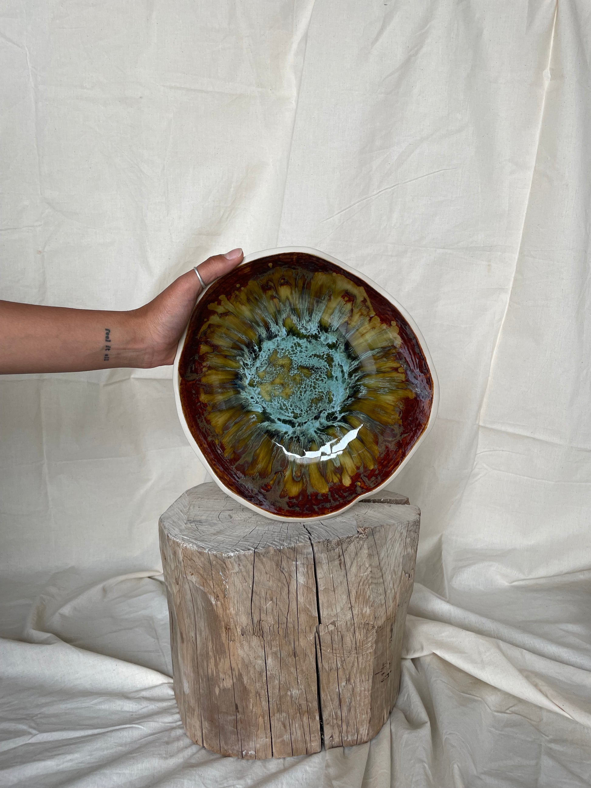 Crafted with the intention to inspire connection, this serving bowl is designed to bring people together over meals made with love. Each piece is handmade with care, featuring deep, complex glazes that add warmth and character to any space. Its versatility shines, whether used for shared dishes, salads, or as a centrepiece fruit bowl - inviting connection in meaningful ways, however you use it.
