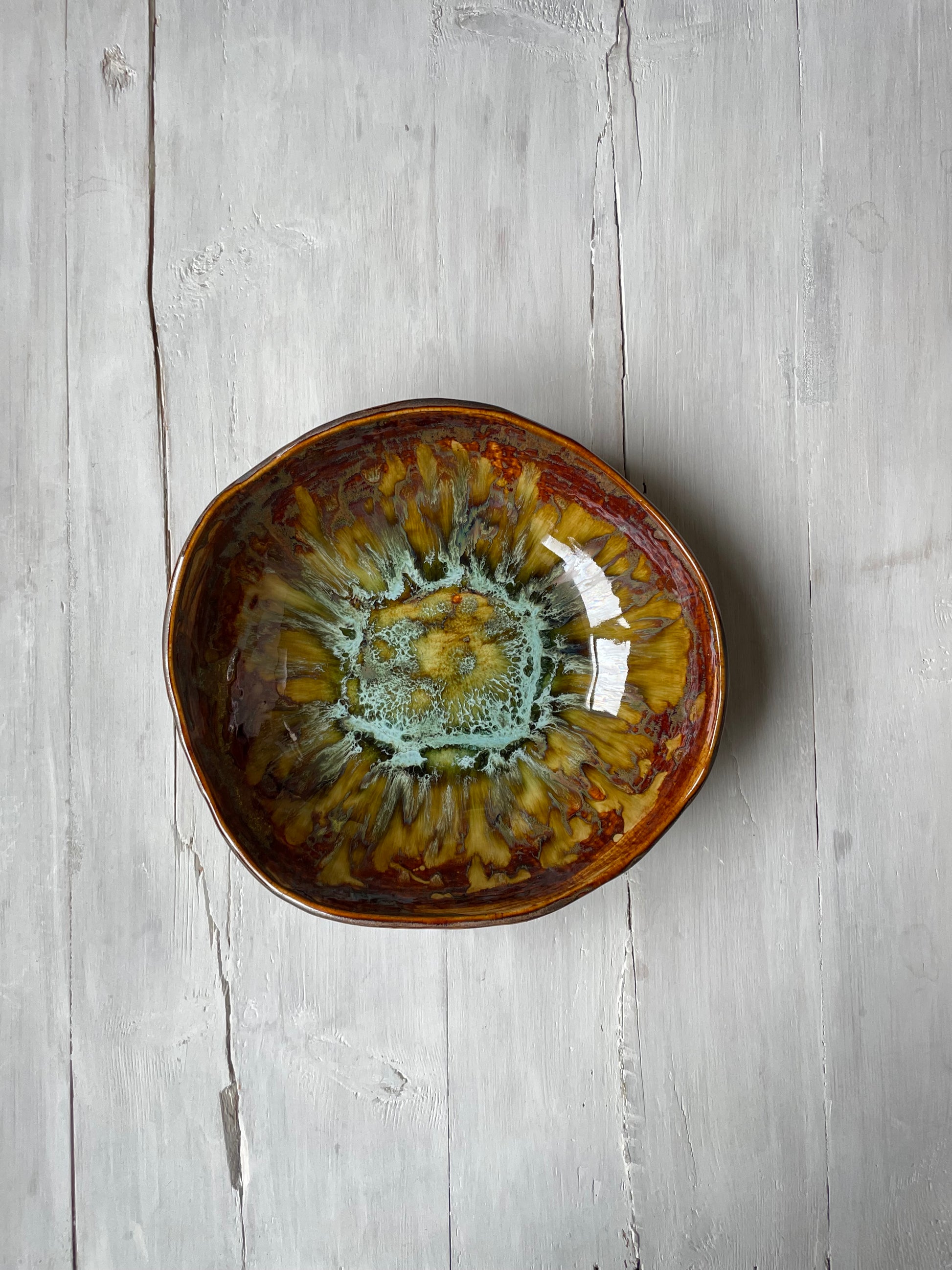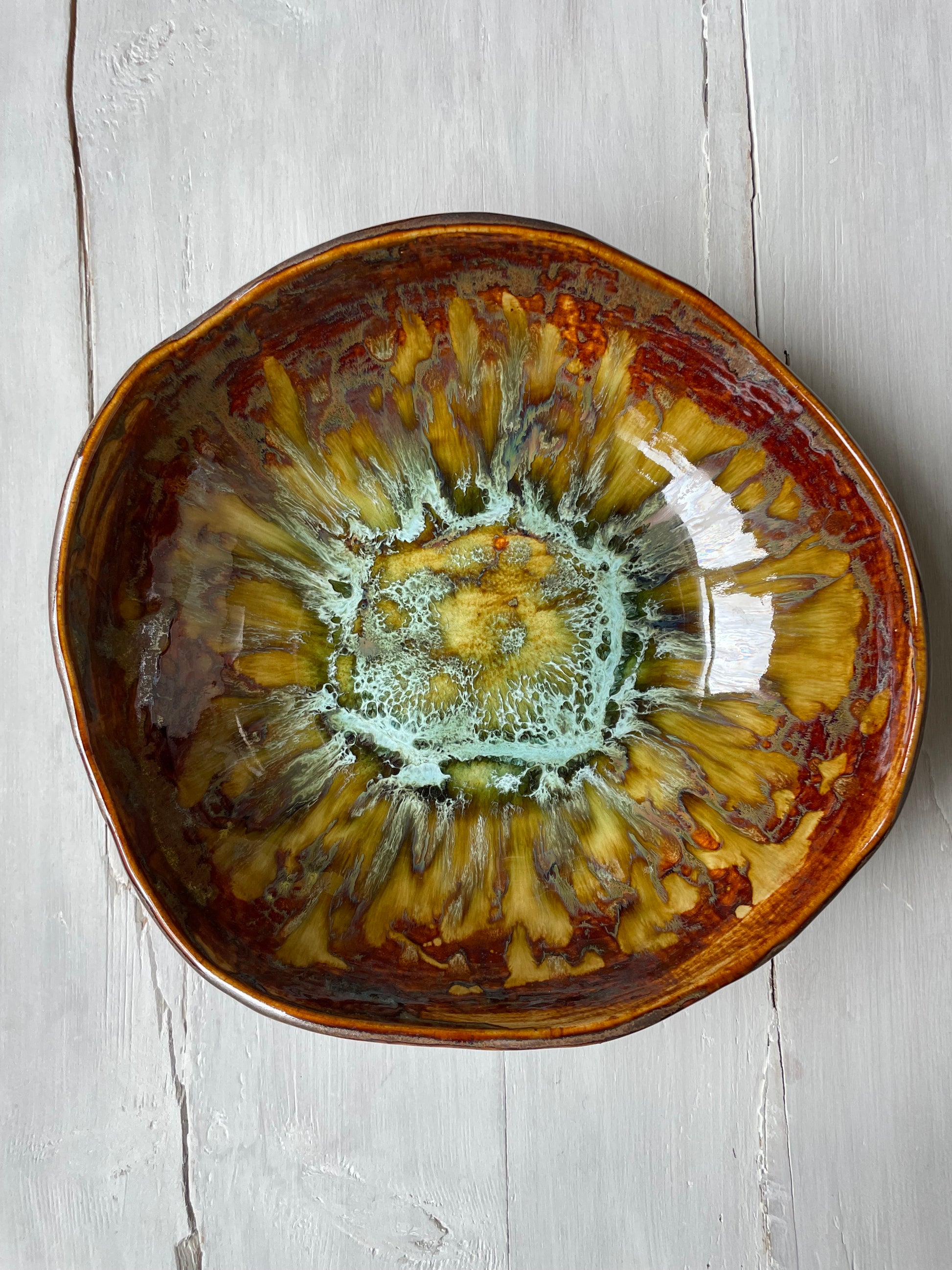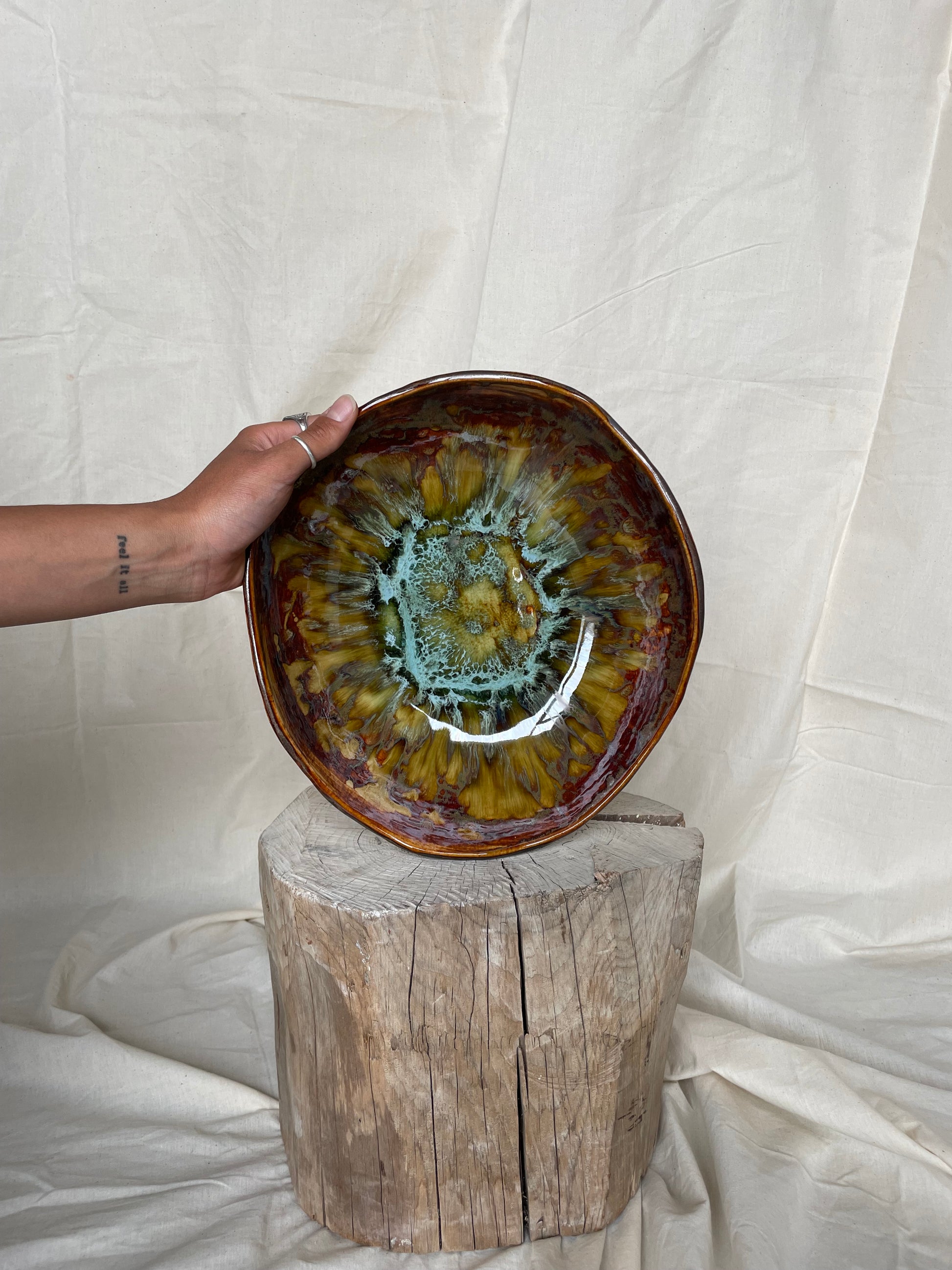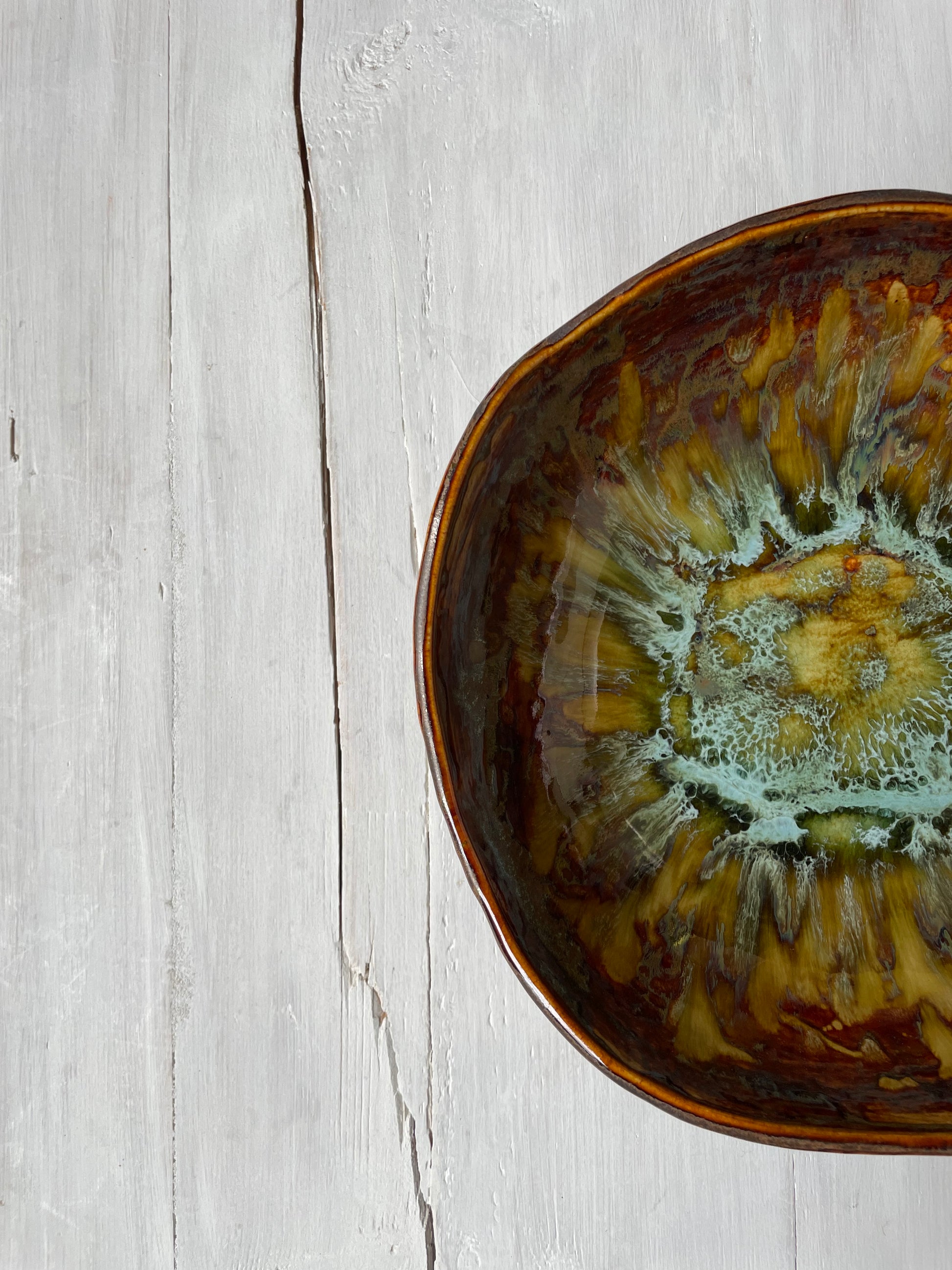 Crafted with the intention to inspire connection, this serving bowl is designed to bring people together over meals made with love. Each piece is handmade with care, featuring deep, complex glazes that add warmth and character to any space. Its versatility shines, whether used for shared dishes, salads, or as a centrepiece fruit bowl - inviting connection in meaningful ways, however you use it.