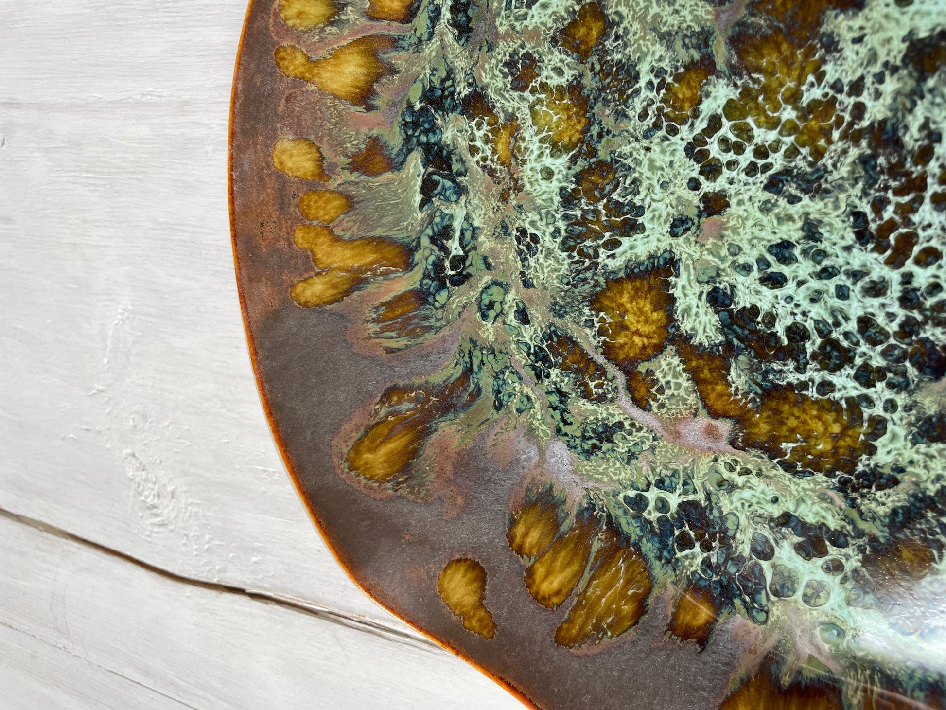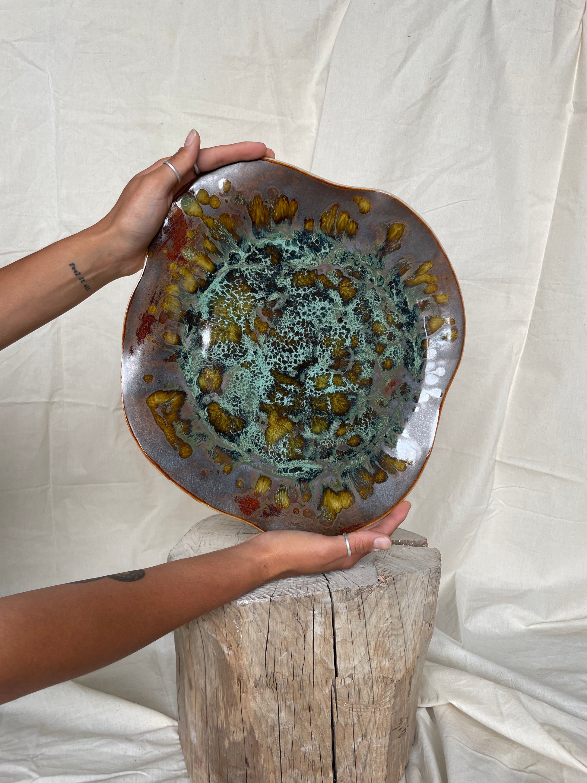 Handmade with care, each piece is unique, featuring deep, rich glazes that add warmth and character to any setting. The high-quality craftsmanship ensures a durable piece that can be cherished for years, enhancing every shared meal with beauty and intention. Let this platter be a centrepiece for gatherings, a blend of art and functionality that enriches every table and moment shared.